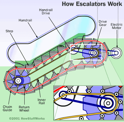 扶梯会移动的部件主要有扶手带与梯级。相比固定件,这些移动件的危险系数更高。扶手带伤人并不取决于体重,即使是成年人抓住扶手带不放手,也能被带下去。扶梯意外之所以多发生在儿童身上,是因为他们年纪小、好奇、爱玩并且在意外发生时不能及时准确采取行动。