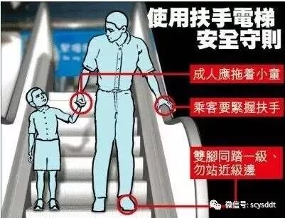4、乘坐扶梯时,紧握扶手,双脚稳站在梯级内,避免站近级边。用手拉紧儿童或抓紧容易掉落的小件物品。