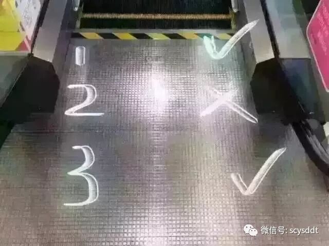 业人员指出,下图中写“2”的这块区域是安全盲区,写“1”和“3”的区域安全,千万记住第二块最危险!第一和第三块可以踩,第二块千万不要踩,因为下面是空的,容易卷进去,乘坐电梯时务必小心谨慎。